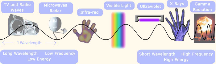 In the past few decades different forms of light therapy have been developed. Most of them have focused on the isolation of specific parts or spectra of the electromagnetic spectrum. Here is a diagram of the electromagnetic spectrum:
